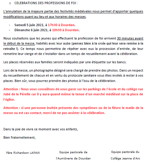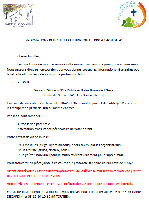 Je vous prie de bien vouloir prendre connaissance ICI du protocole sanitaire et du courrier d'information ci-dessous.