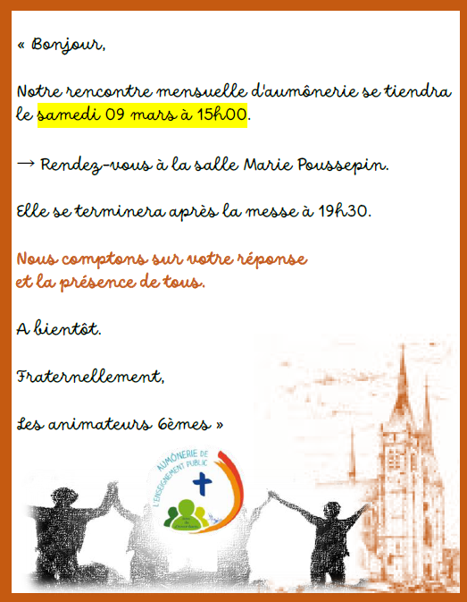 AUMONERIE DES JEUNES DU SECTEUR DE DOURDAN
