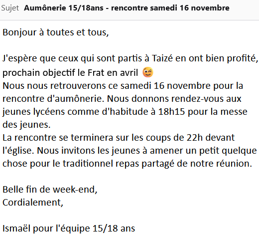 Message spécifique aux 15/18: