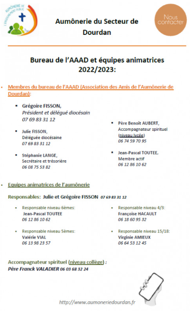 AUMONERIE DES JEUNES DU SECTEUR DE DOURDAN