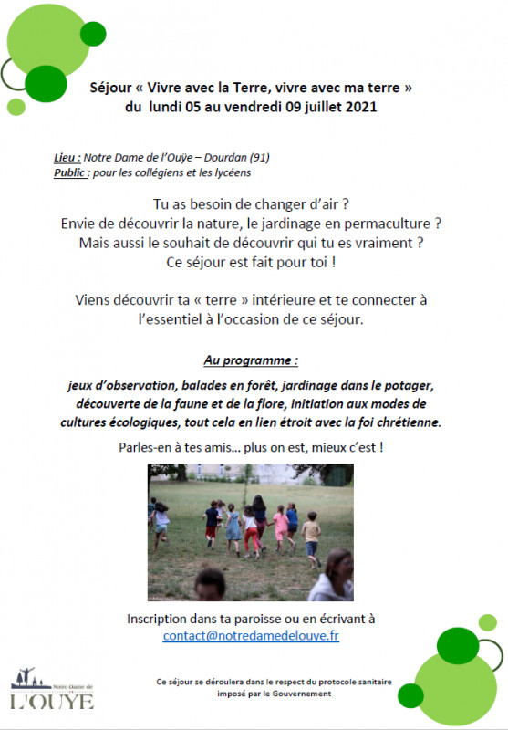 Par conséquent, nous vous envoyons une proposition de séjour « au vert ! » pour vos jeunes collégiens et lycéens, dans le respect du protocole sanitaire imposé par le Gouvernement,